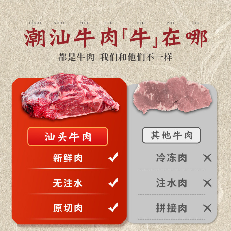鲜肉现切 潮庭潮汕牛肉新鲜切吊龙五花趾雪花牛肉火锅套餐食材