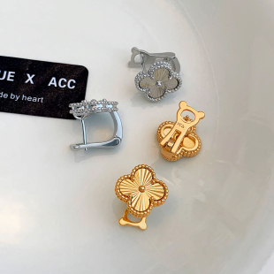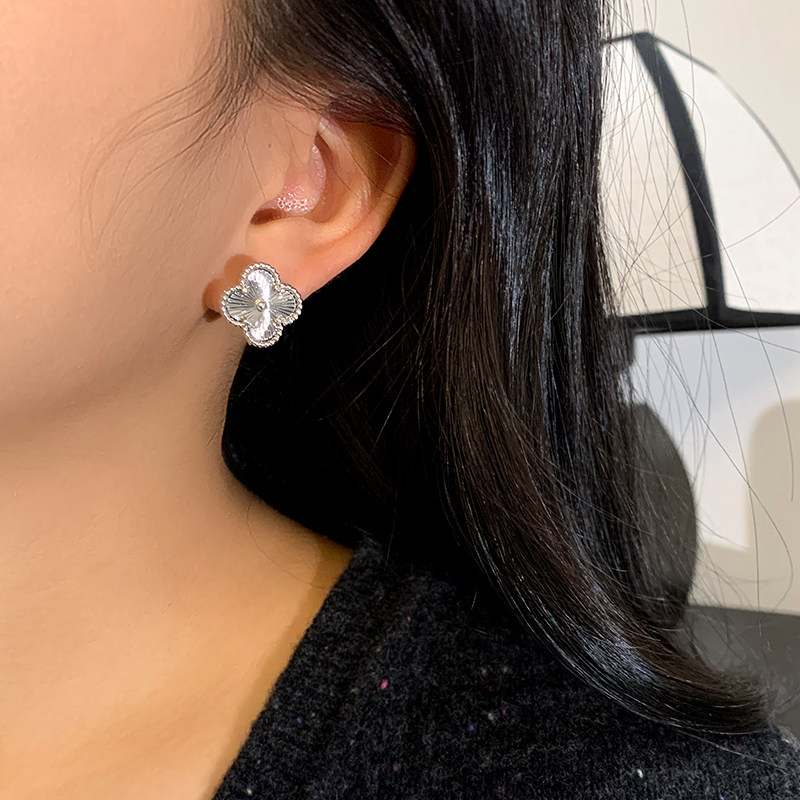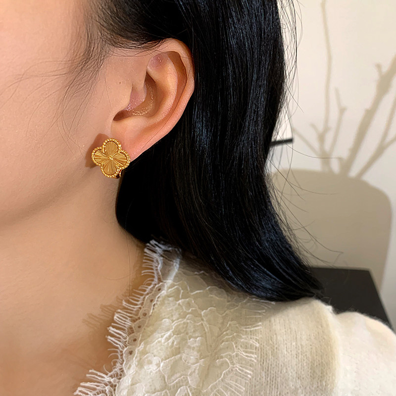 简约镭射四叶草耳钉女轻奢通勤耳扣金属小众百搭高级感极简耳环潮