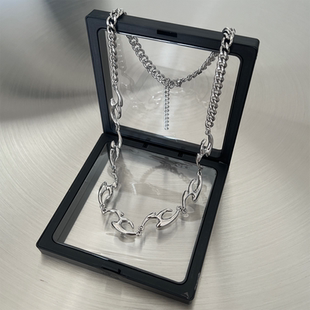 复古黑银色莫比乌斯项链男钛钢不掉色高级颈链小众设计锁骨链潮流