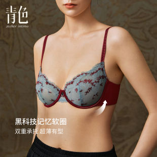 内衣大胸显小防下垂文胸 青色性感双色列维斯蕾丝超薄款 女帝