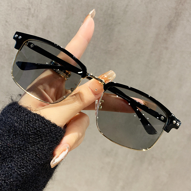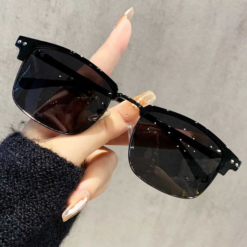 2025复古美式 金属小框圆脸墨镜女高级椭圆防晒街拍凹造型太阳眼镜