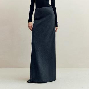 半身裙女胖妹妹高腰mm显瘦后开叉直筒长裙 黑色毛呢款 巨好看 大码