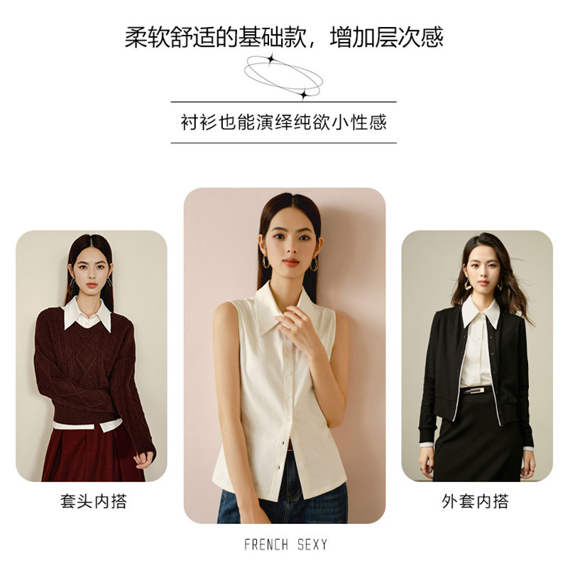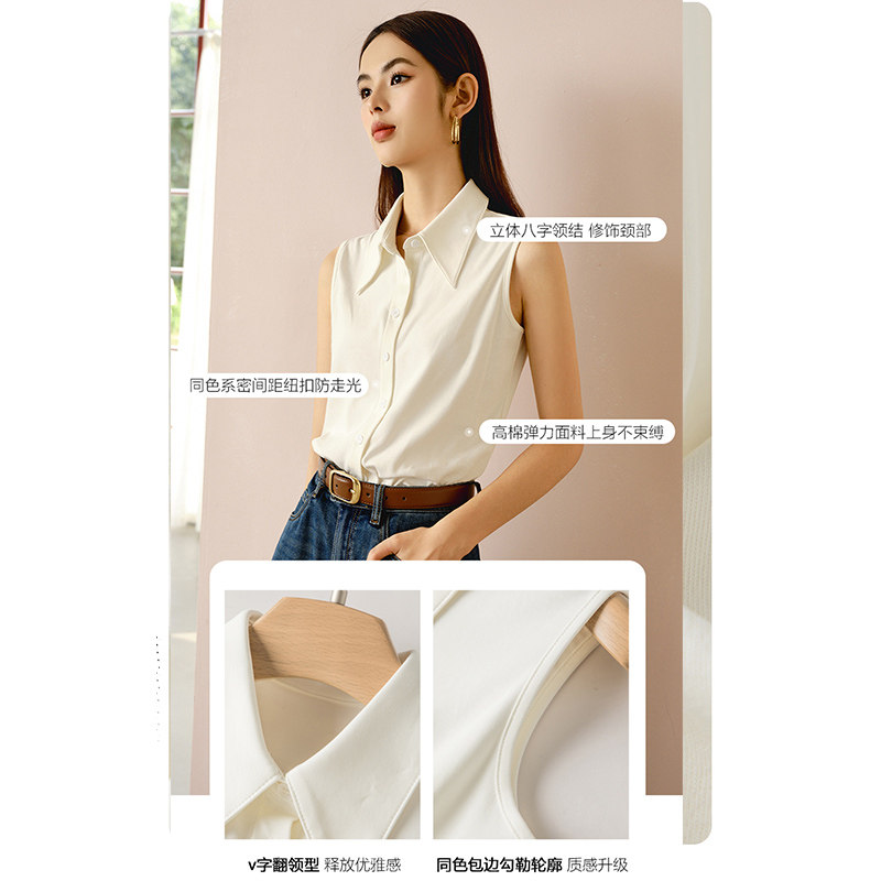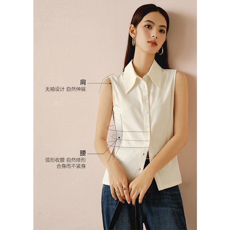 打底上衣翻领衬衫 米白纯棉无袖 千寻宜2026春季 女 叠穿内搭神器