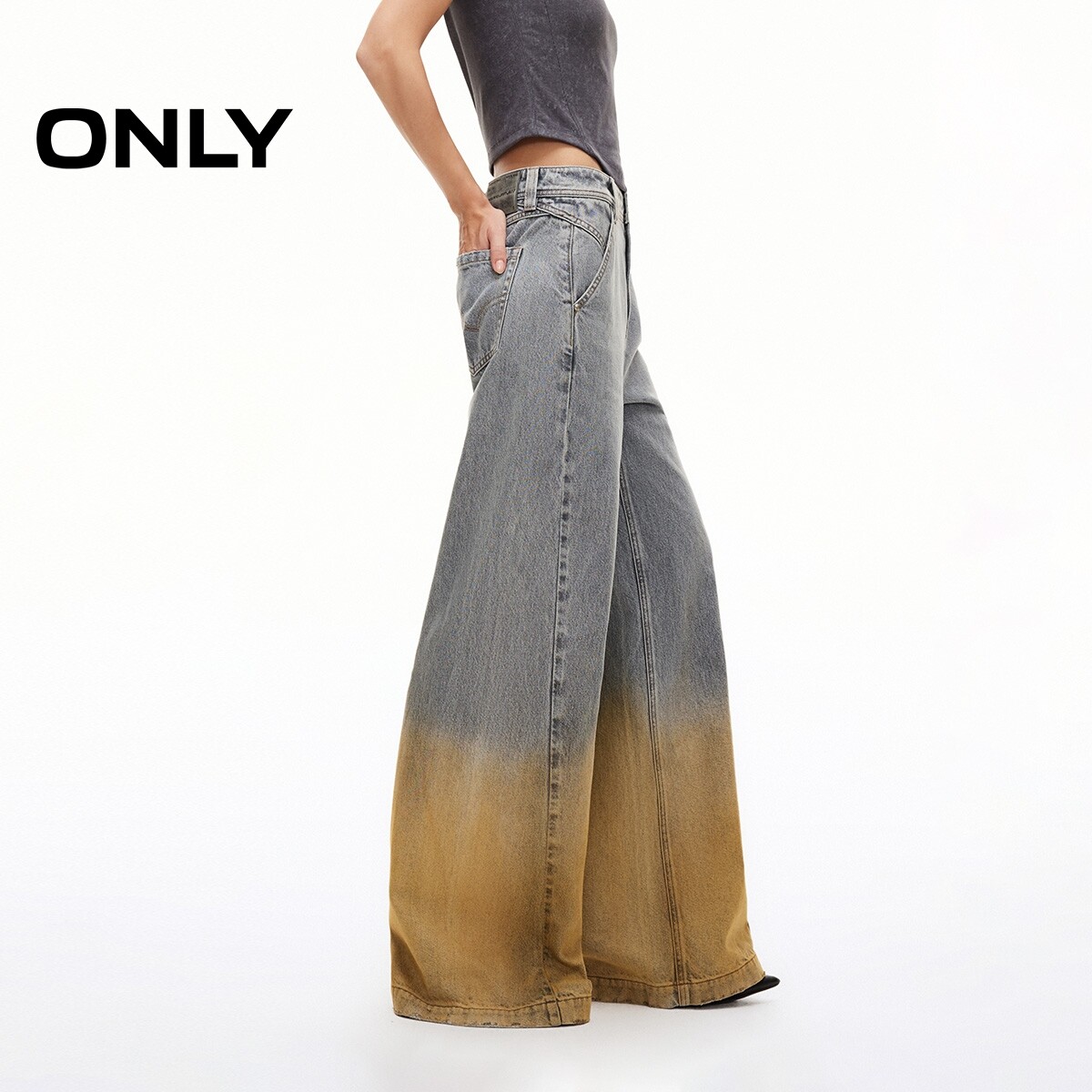 新款 春季 潮流渐变水洗宽松直筒裤 长裤 女 牛仔裤 ONLY奥莱
