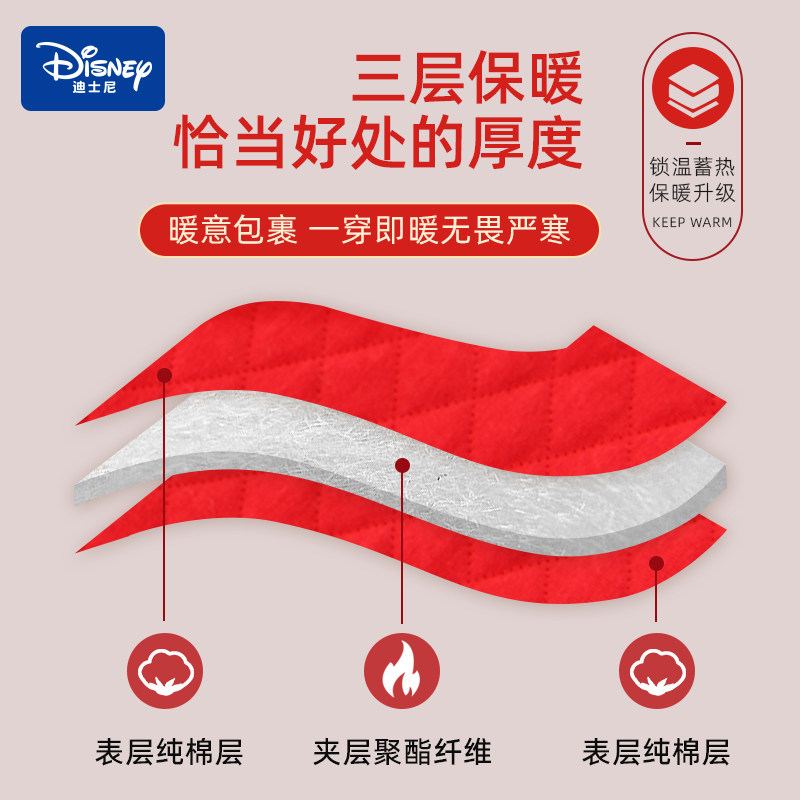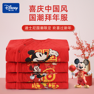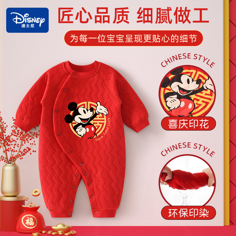 迪士尼新生婴儿夹棉哈衣保暖连体衣纯棉秋冬宝宝满月衣服儿童内衣