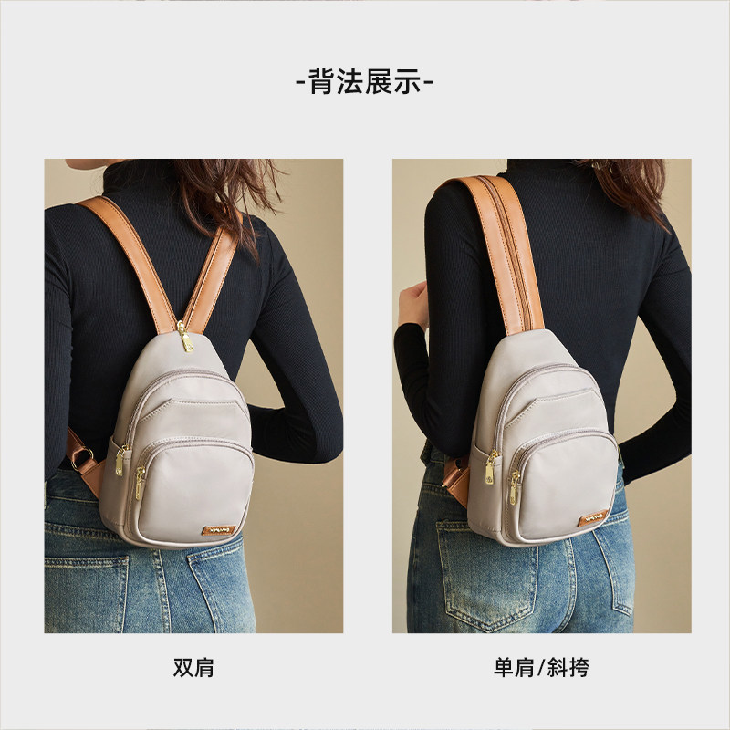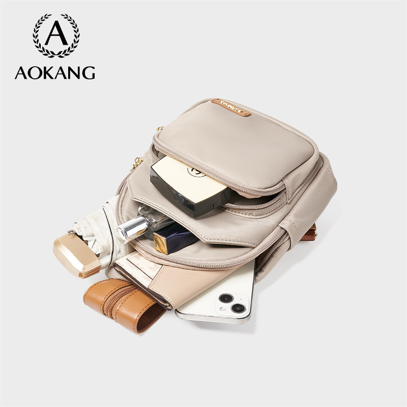 奥康多功能双肩包2026新款 斜挎包多功能胸包潮帆布背包 单肩包女款