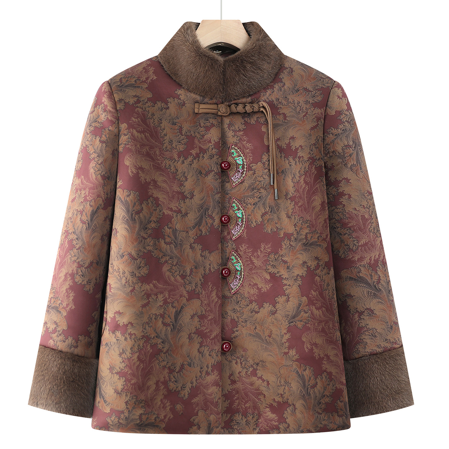 奶奶冬装 老年人棉衣洋气妈妈加绒加厚外套老太太衣服 棉袄女新中式