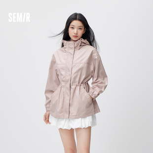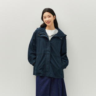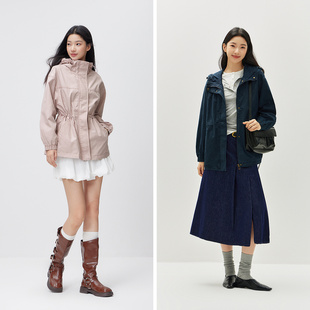 森马牛仔外套女春季 宽松做旧连帽落肩收腰夹克女生复古衣服 中长款