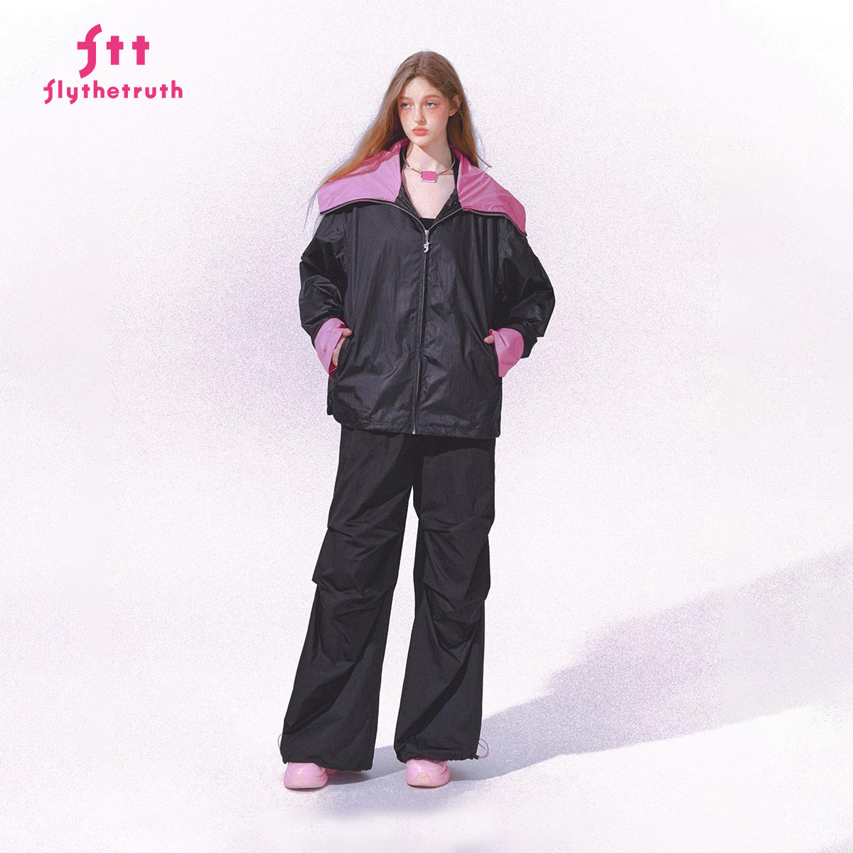 撞色休闲外套女秋新款 FTT 美式 草莓黑巧 宽松夹克 FlyTheTruth