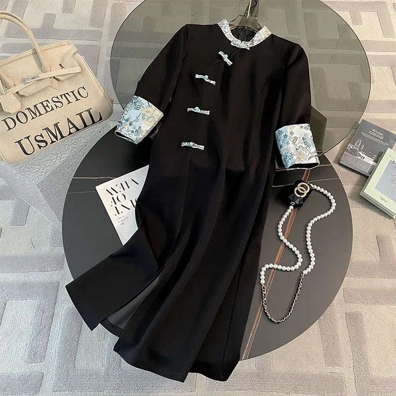 连衣裙2024新款 300斤女装 显瘦气质打底遮肉裙子 大码 民国风新中式