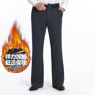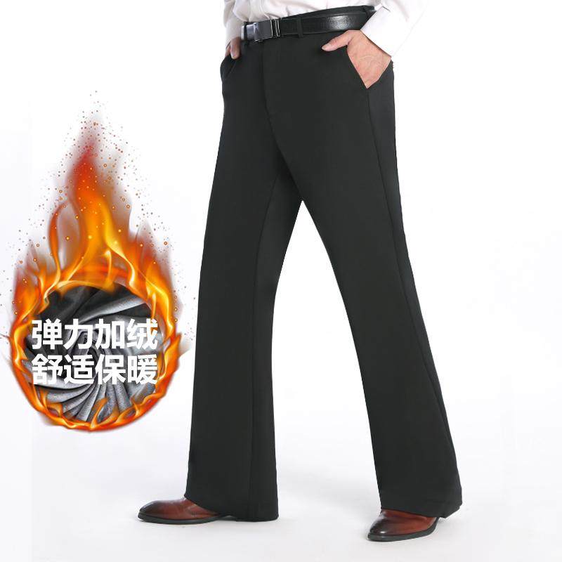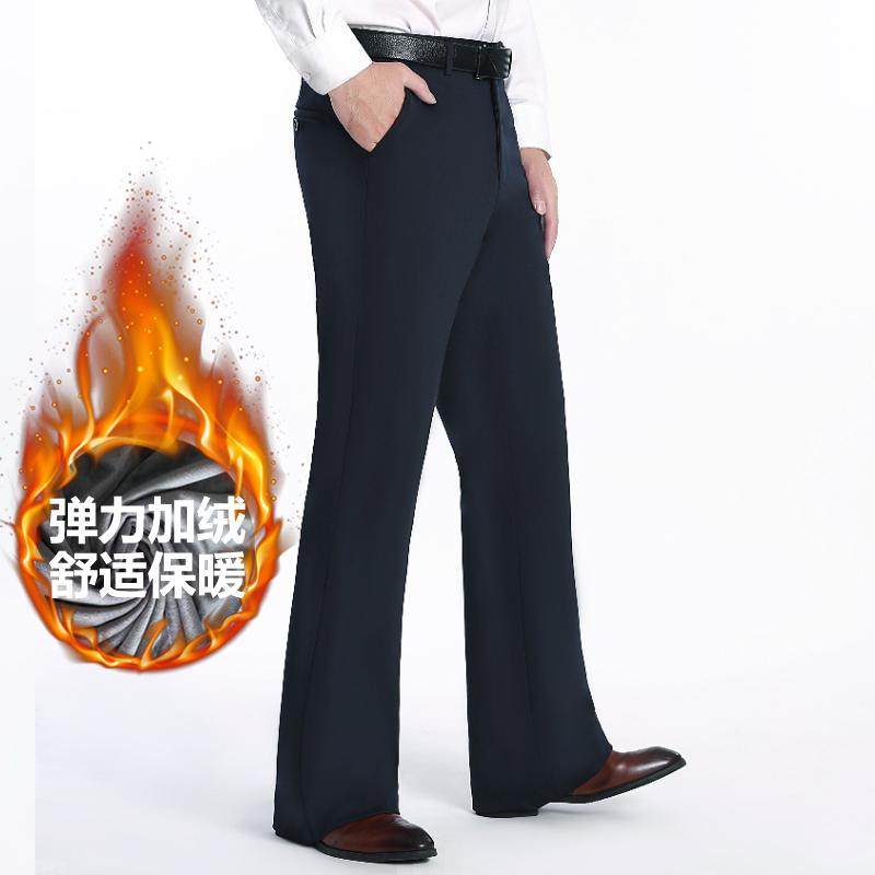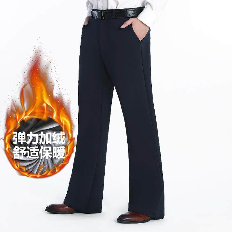 商务休闲直筒裤 四面弹冬季 百搭垂感抗皱阔腿裤 男时尚 加绒微喇叭裤