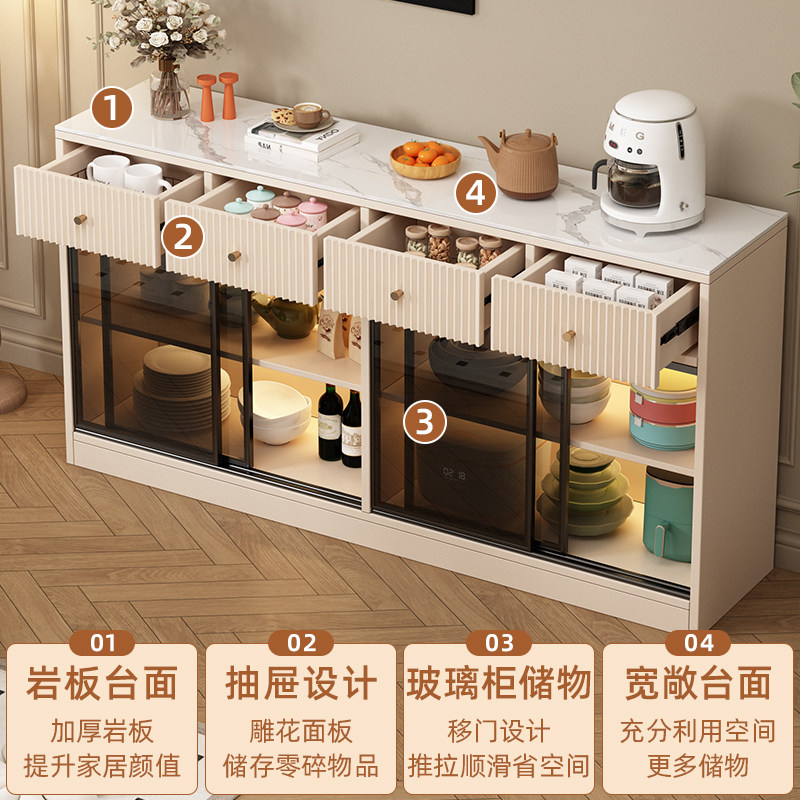 岩板厨房置物柜家用多层餐边柜客厅多功能储物柜可移动收纳小岛台