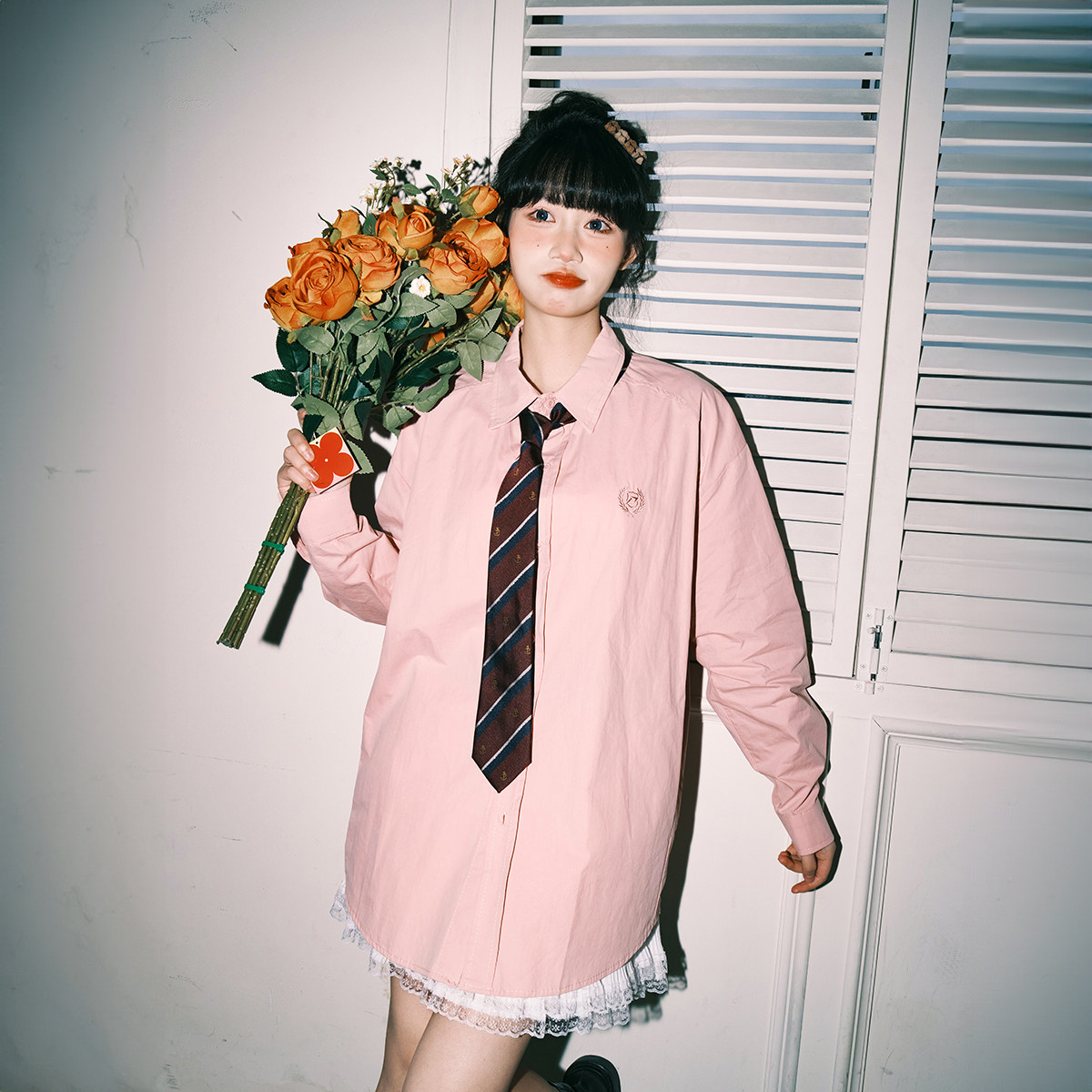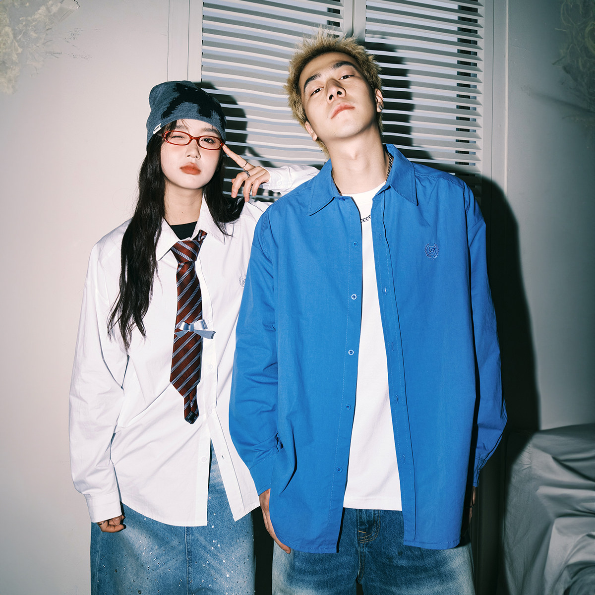 lemanism纯色简约学院风长袖 男2025春秋情侣宽松寸衣衬衣外套 衬衫