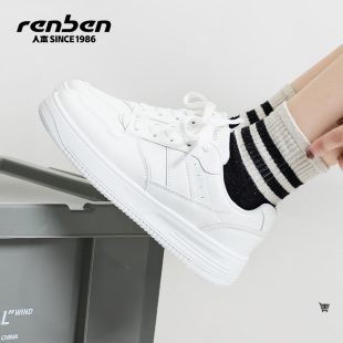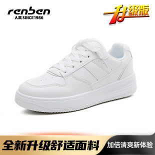 百搭学生运动休闲增高板鞋 人本白色厚底小白鞋 春季 2026新款 女棉鞋