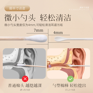 棉签掏耳朵专用不掉毛成人挖耳勺双头一次性黑色大人家用盒装 棉棒