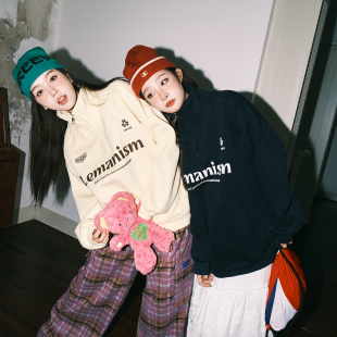 lemanism400g重磅半拉链立领卫衣男黑色春秋情侣款 宽松套头外套女