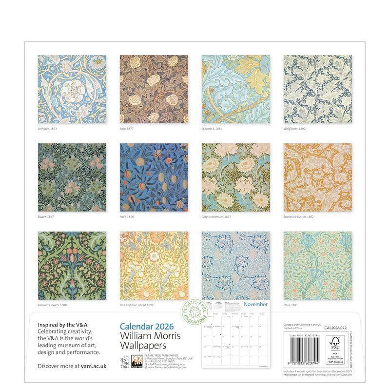 Morris 预售 V&A Wallpapers 原版 2026年挂历 Calendar V&A:威廉·莫里斯壁纸 日历 艺术日历 Wall William