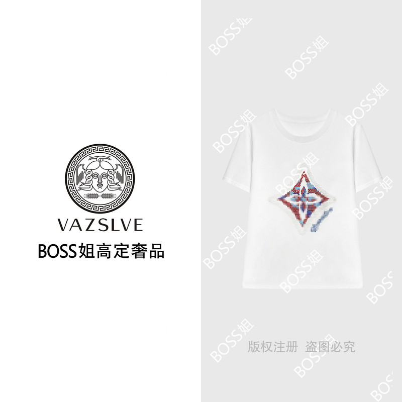 烫钻T恤2025夏显瘦休闲潮流个性 68036 原创设计 上衣 VAZSLVE