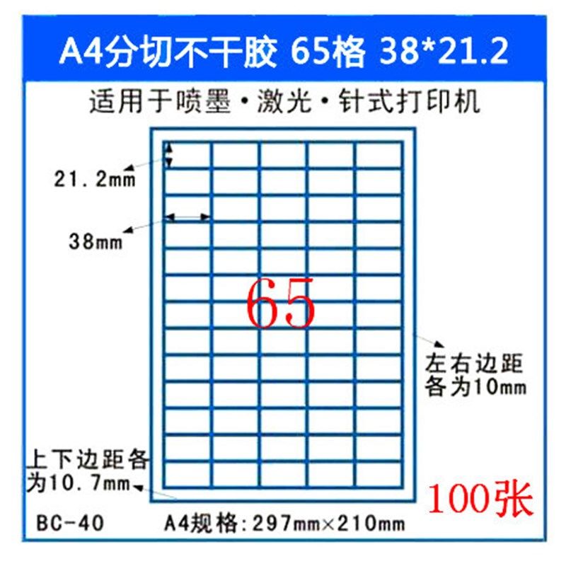 A4不干胶纸打印标签贴纸65格切割可定做不干胶哑面自粘空白标签纸