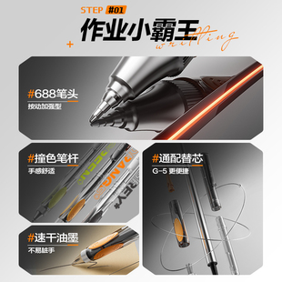 晨光作业小霸王0.5速干按动中性笔全针管低重心学生刷题笔高颜值笔学生考试用刷题笔黑色速干顺滑黑色笔芯