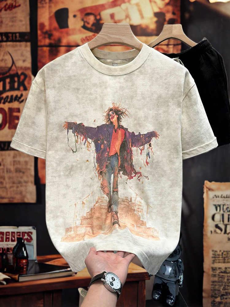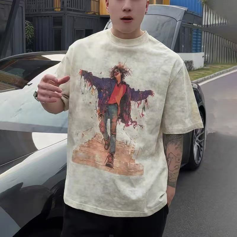 t恤宽松时尚 打底衫 百搭夏季 宽松卡通印花短袖 美式 体恤衫 潮牌男士