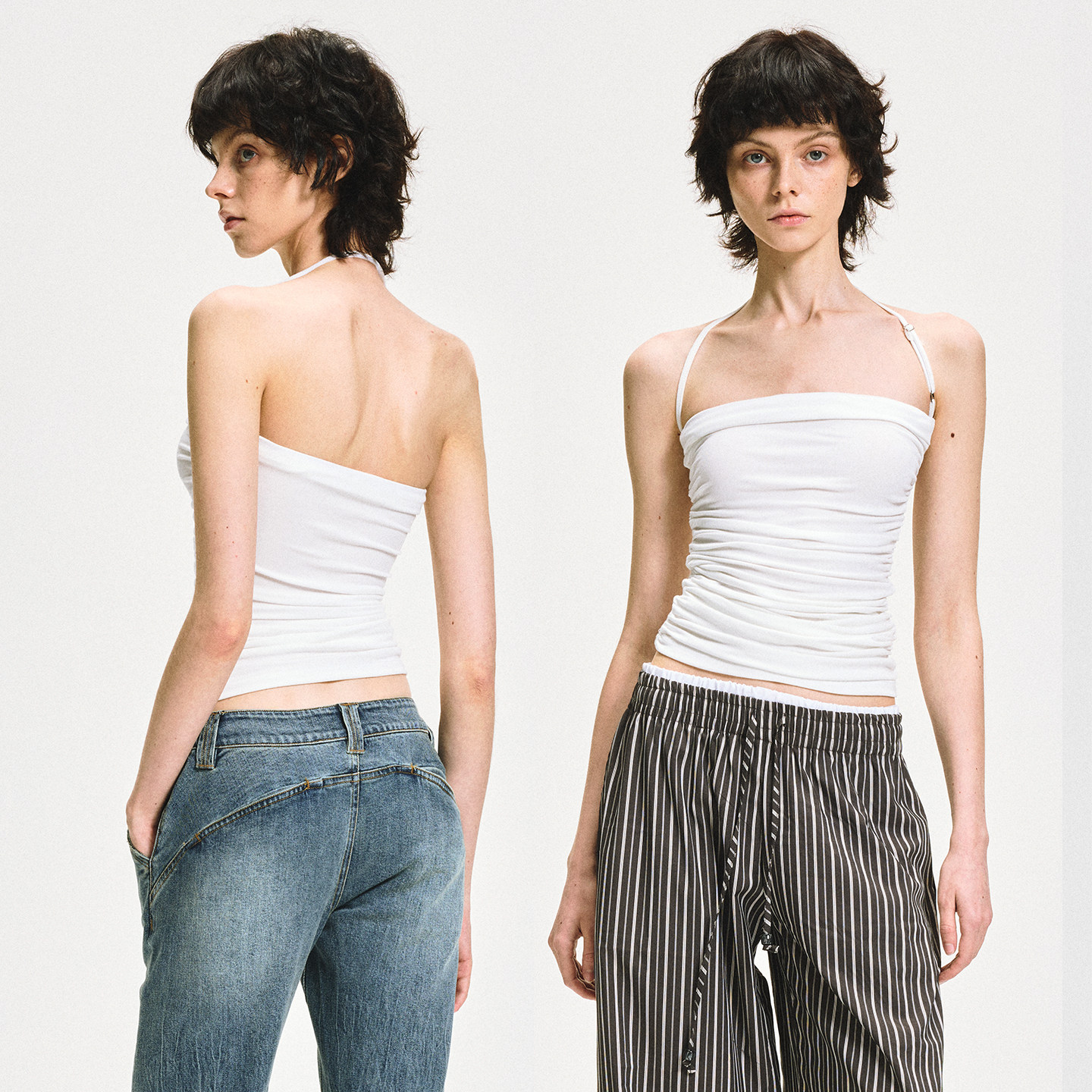 2025打底衫 内搭外穿圆领露锁骨背心吊带纯色紧身百搭螺纹棉女上衣