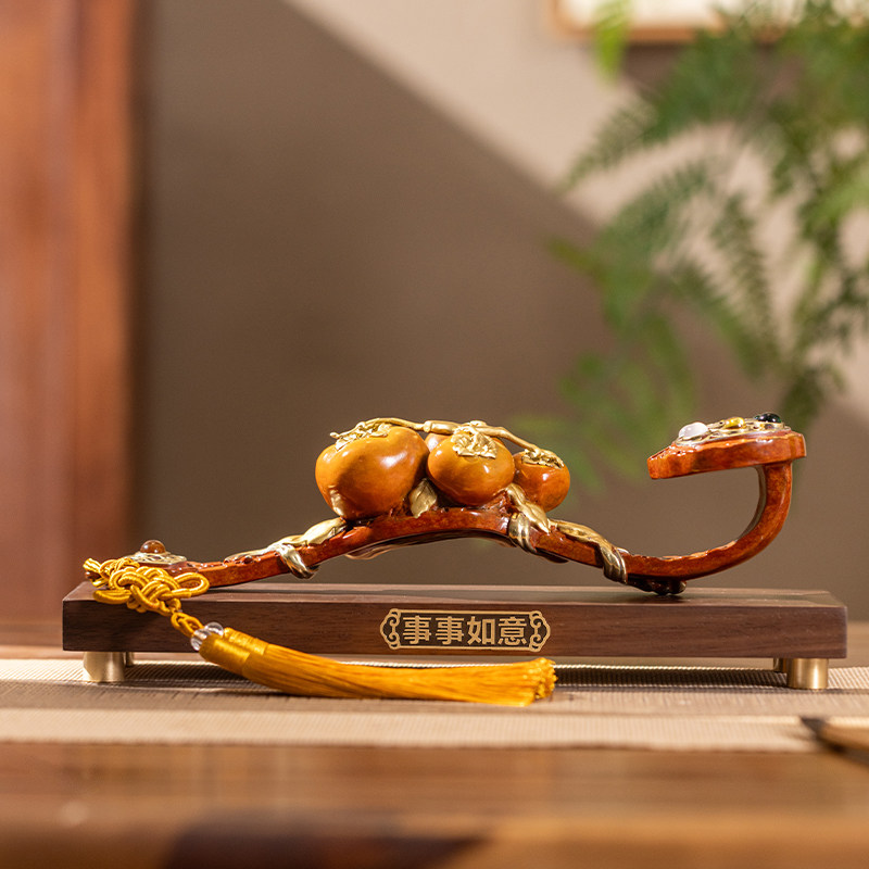 朱炳仁铜事事如意柿子如意摆件玄关客厅装 饰乔迁生日送礼