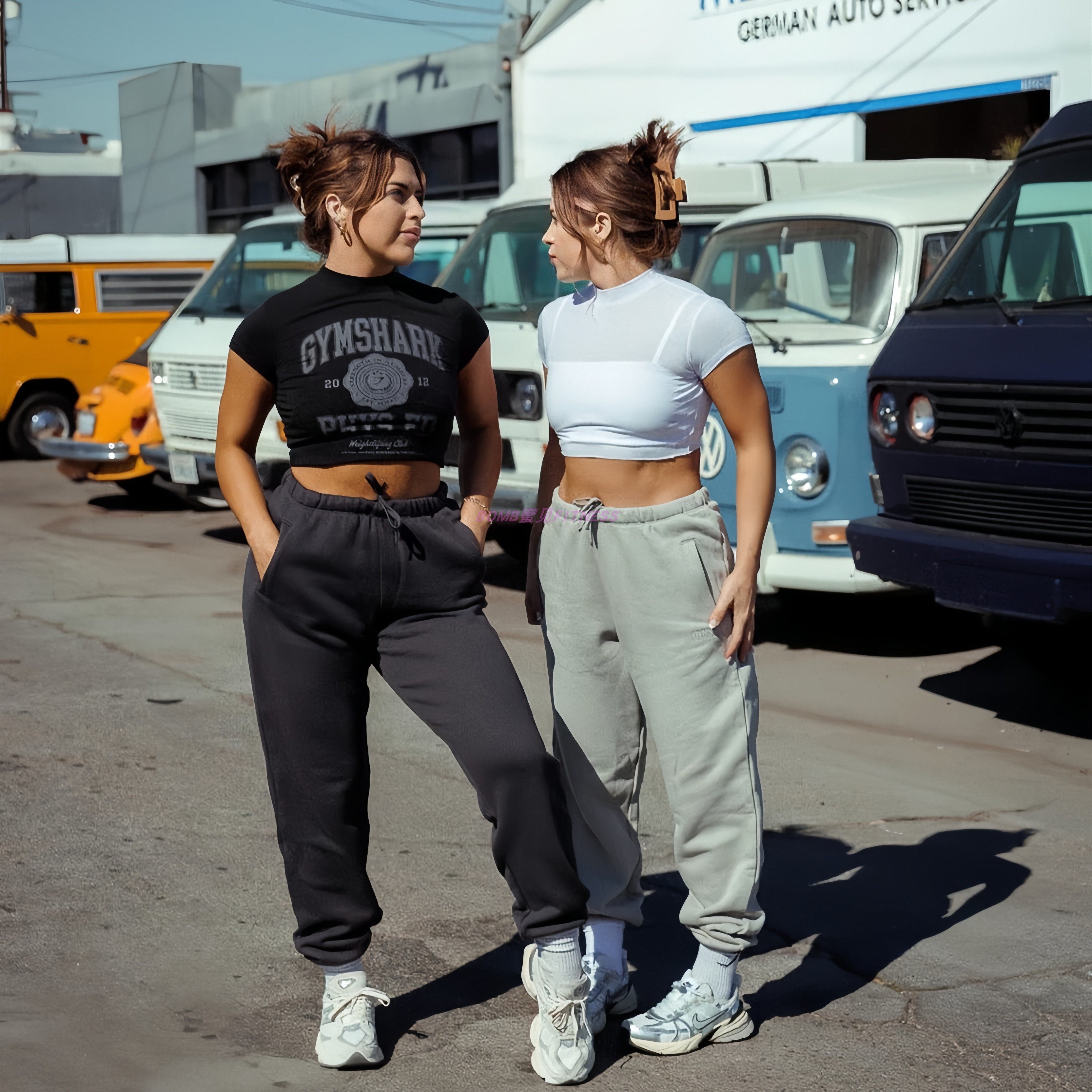 T恤背心 长款 软糯BomB蜜见 鲨鱼复古透气花纹运动健身训练字母短袖