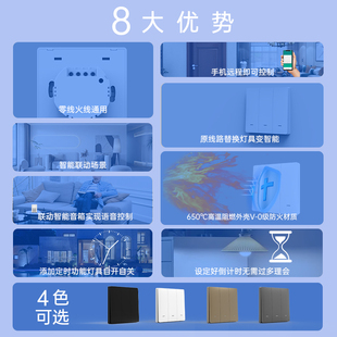 涂鸦WiFi智能开关墙壁86型单火零火远程控制定时语音天猫精灵小爱