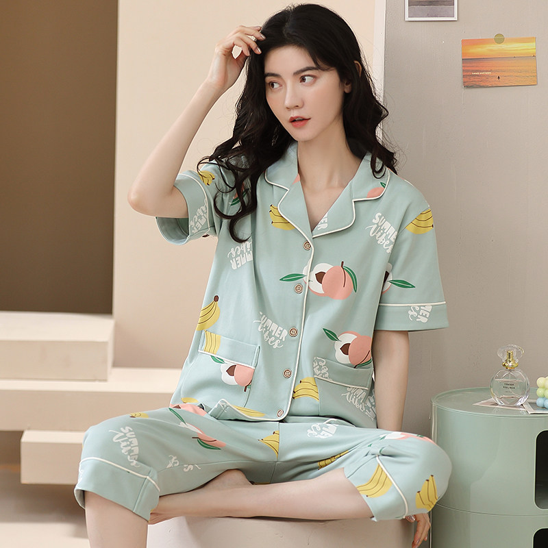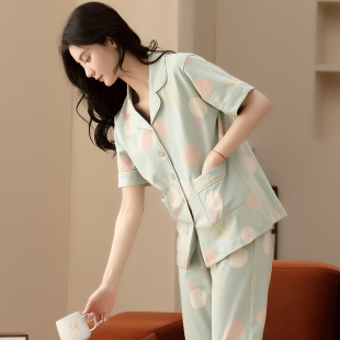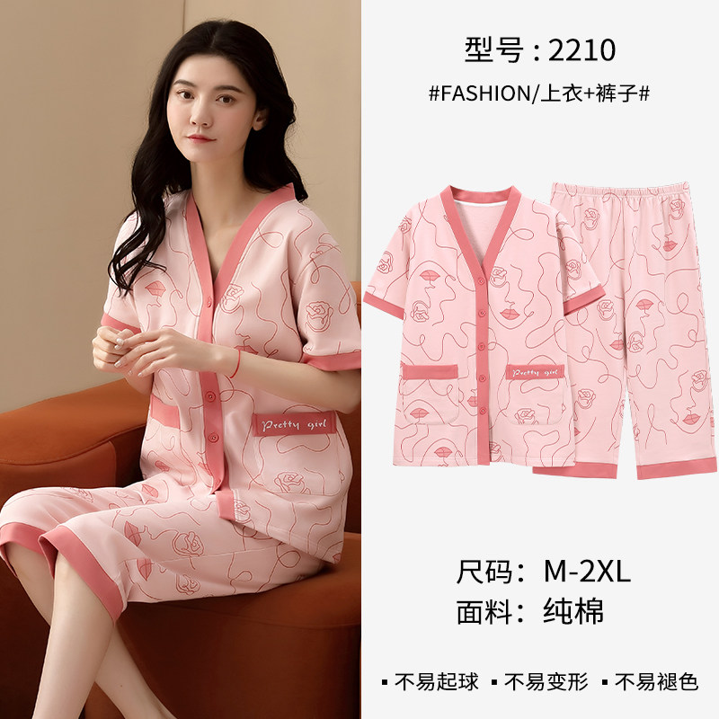 七分裤 休闲宽松大码 薄款 夏款 睡衣女士夏季 家居服两件套装 纯棉短袖
