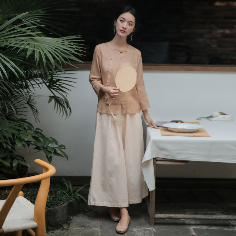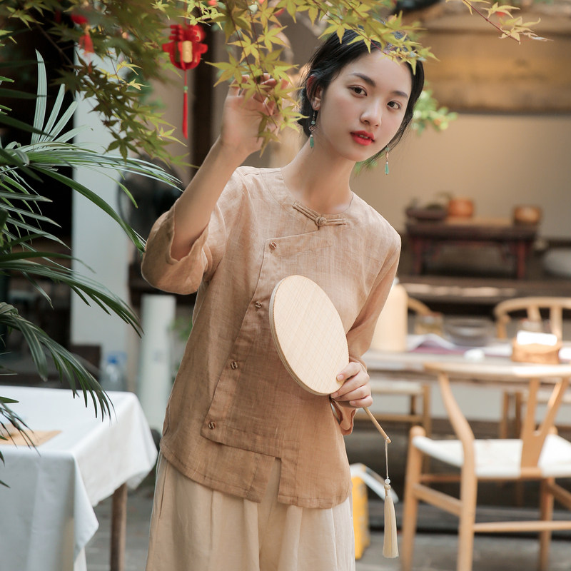 盘扣改良版 棉麻唐装 套装 禅意苎麻茶服女上衣中式 汉服女 中国风女装