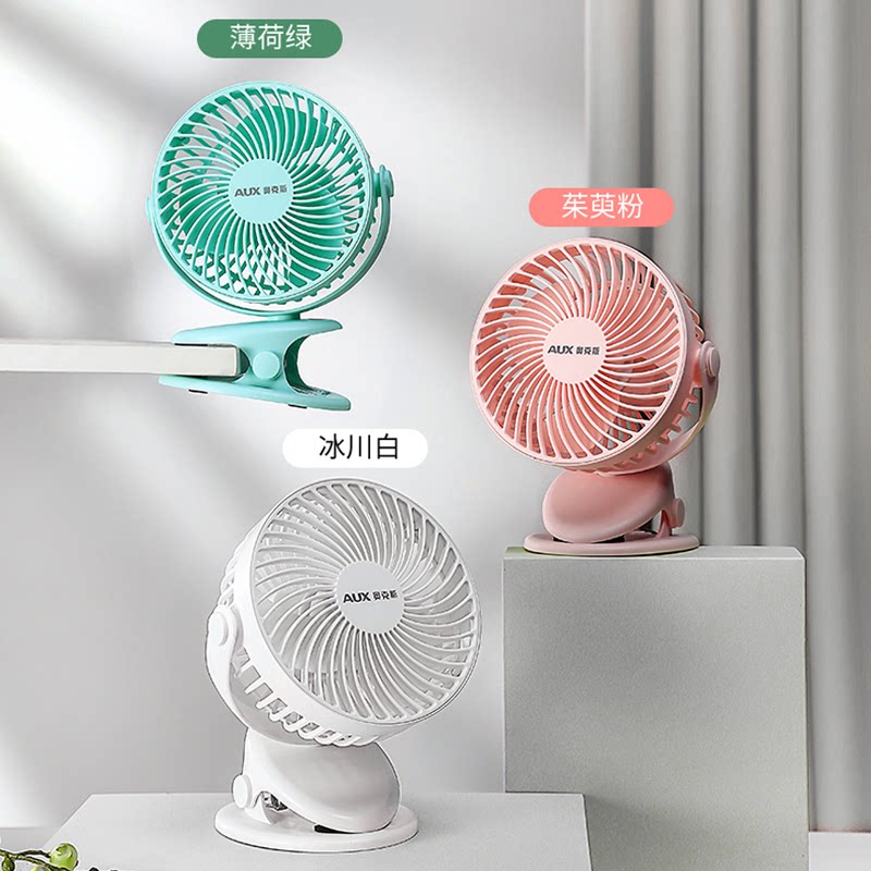 车载电风扇 床上办公室家用随身手持桌面电扇静音充电式 奥克斯小风扇两用便携式 迷你小型宿舍可充电usb夹式
