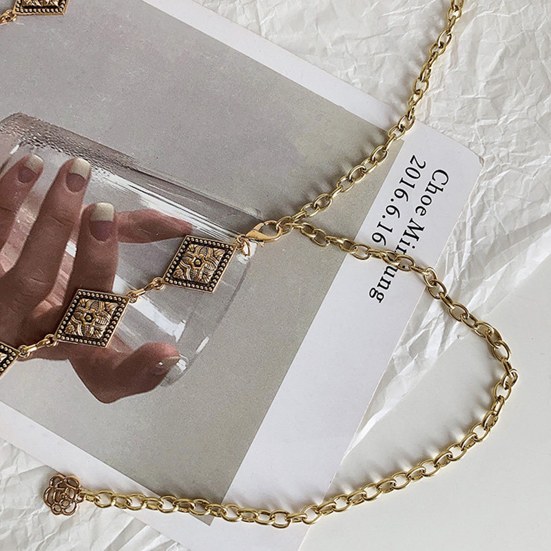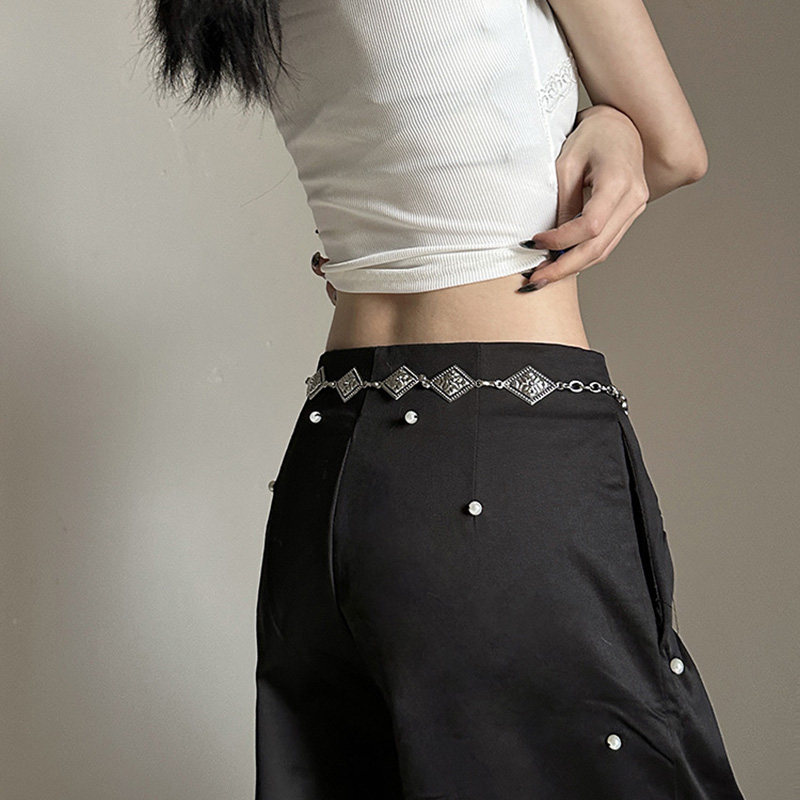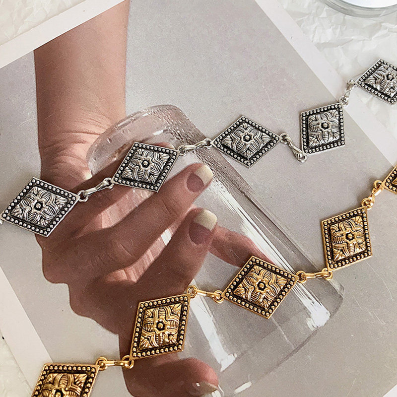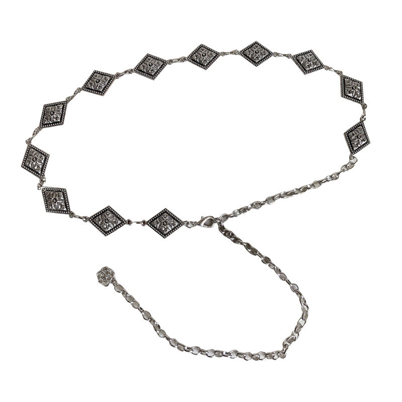 朋克风复古金属腰链女ins时尚 潮流民族风腰链雕花菱形链条细腰带