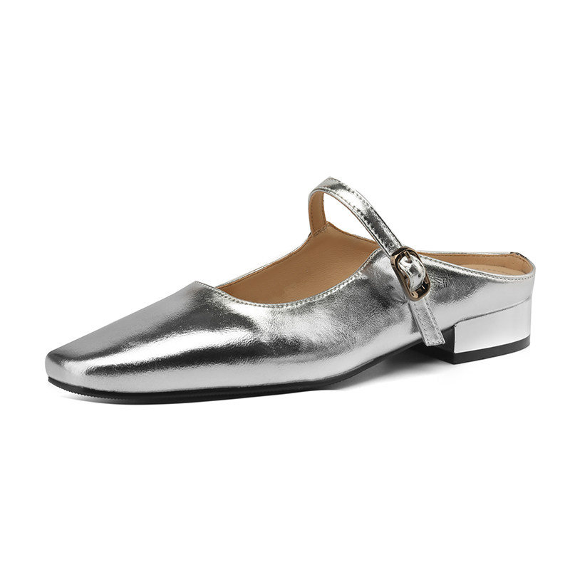 法式 达芙妮包头拖鞋 低跟半拖女鞋 银色单鞋 小凉拖 女夏外穿2026新款