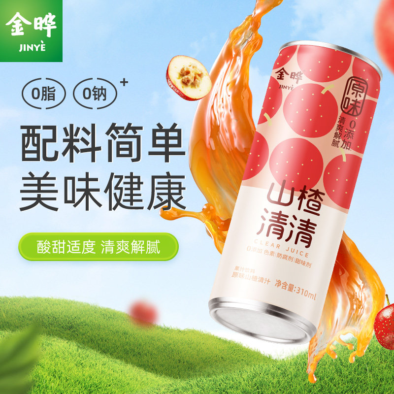 金晔山楂清清原味山楂汁310ml 儿童水果汁饮料饮品抱抱满耒 6罐装