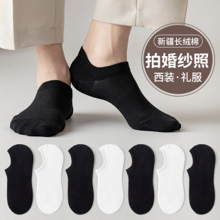 船袜纯棉防臭西装 拍婚纱照男士 皮鞋 正装 黑白色浅口隐形袜 袜子夏款