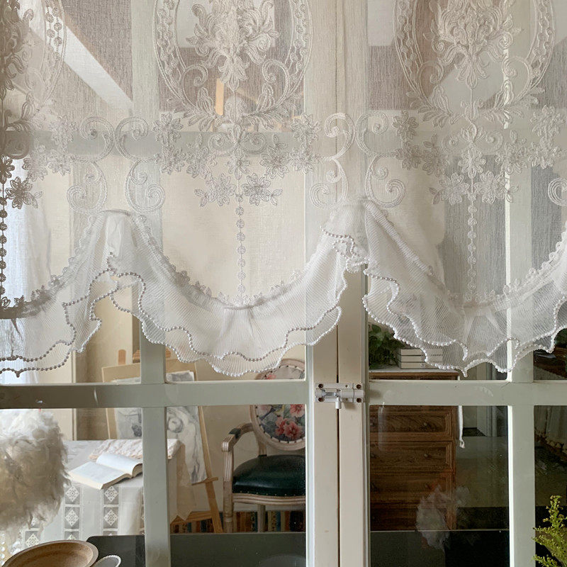 纱帘窗纱窗幔帘头公主免打孔自粘魔术贴半帘短帘隔断 美式 法式 欧式