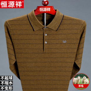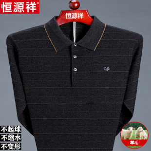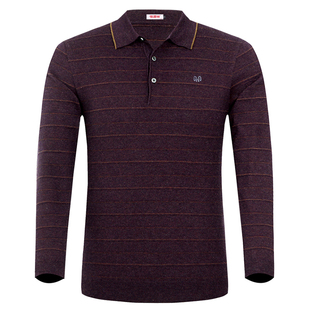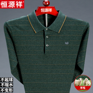 中老年条纹羊毛针织打底衫 t恤男翻领爸爸装 恒源祥长袖 2023年春季