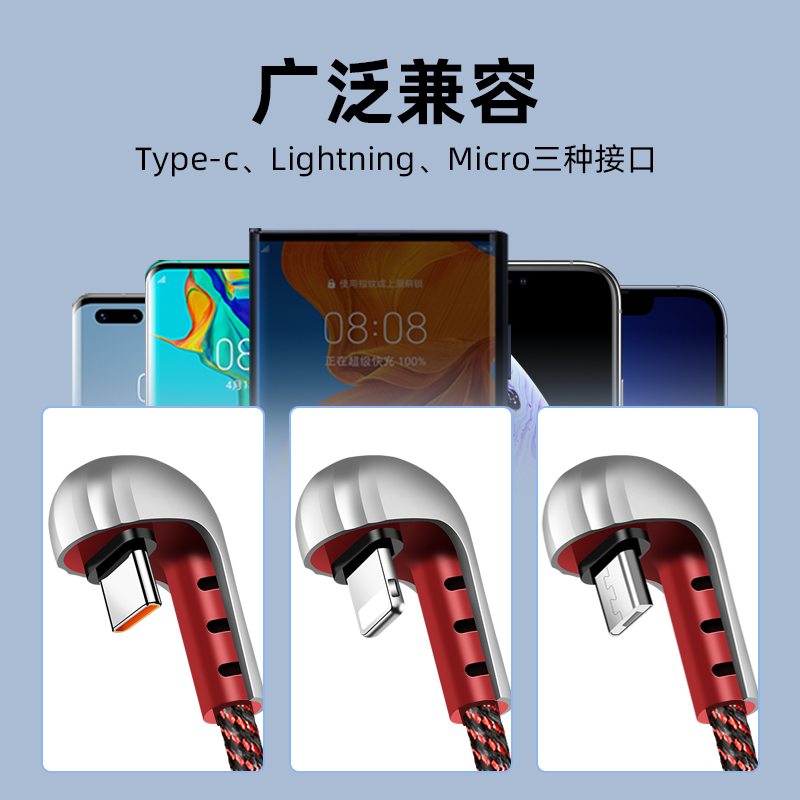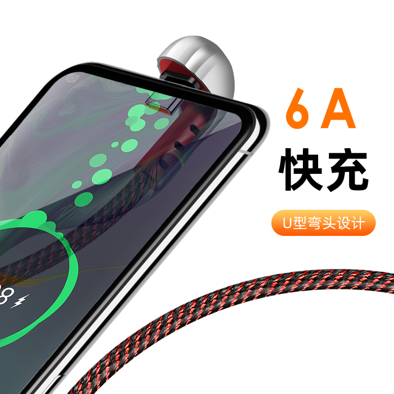小弯头手游数据线6A超级快充适用华为苹果13荣耀50U型游戏充电线mate50Pro吃鸡王者不挡手iPhone14