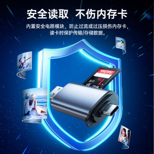 绿联相机读卡器sd卡ccd多功能usb高速内存储卡typec适用华为苹果17佳能大疆连接手机电脑两用tf多合一读取器