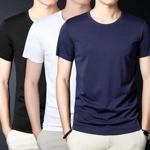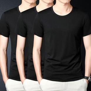 冰丝莫代尔棉短袖 体恤打底衫 t恤男士 圆领纯色半袖 潮 青年夏季 3件
