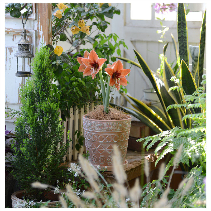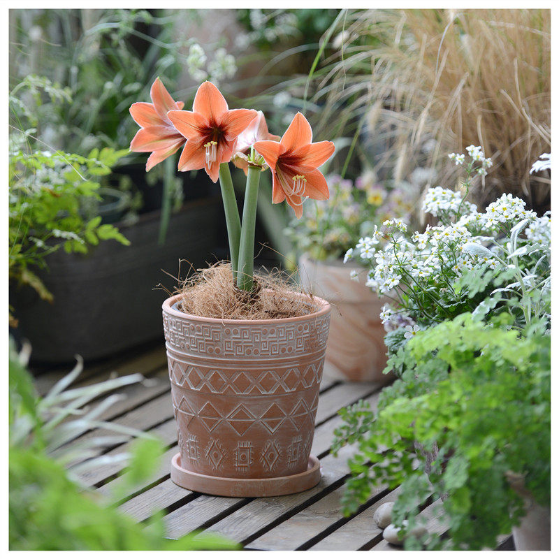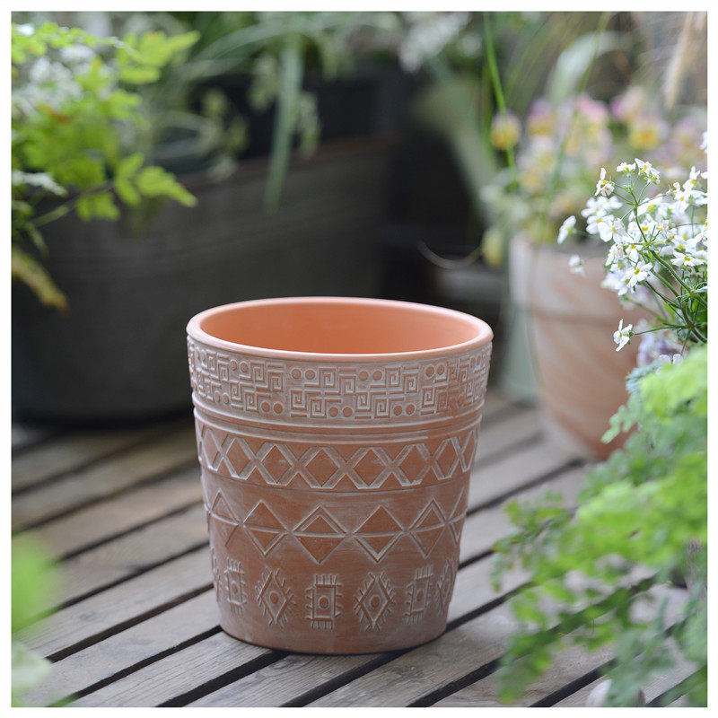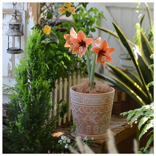 北欧高级轻奢仿手绘陶土花盆桌面绿植盆栽装 饰朱顶红绿萝复古花盆