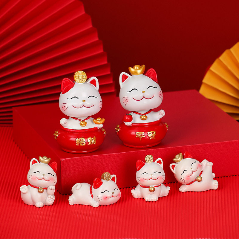 家居树脂摆件招财猫可爱创意卡通公仔玄关办公桌装 饰品圣诞礼品新