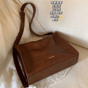 陈慕家包包女2025新款 美拉德复古斜挎包软皮大容量百搭单肩托特包