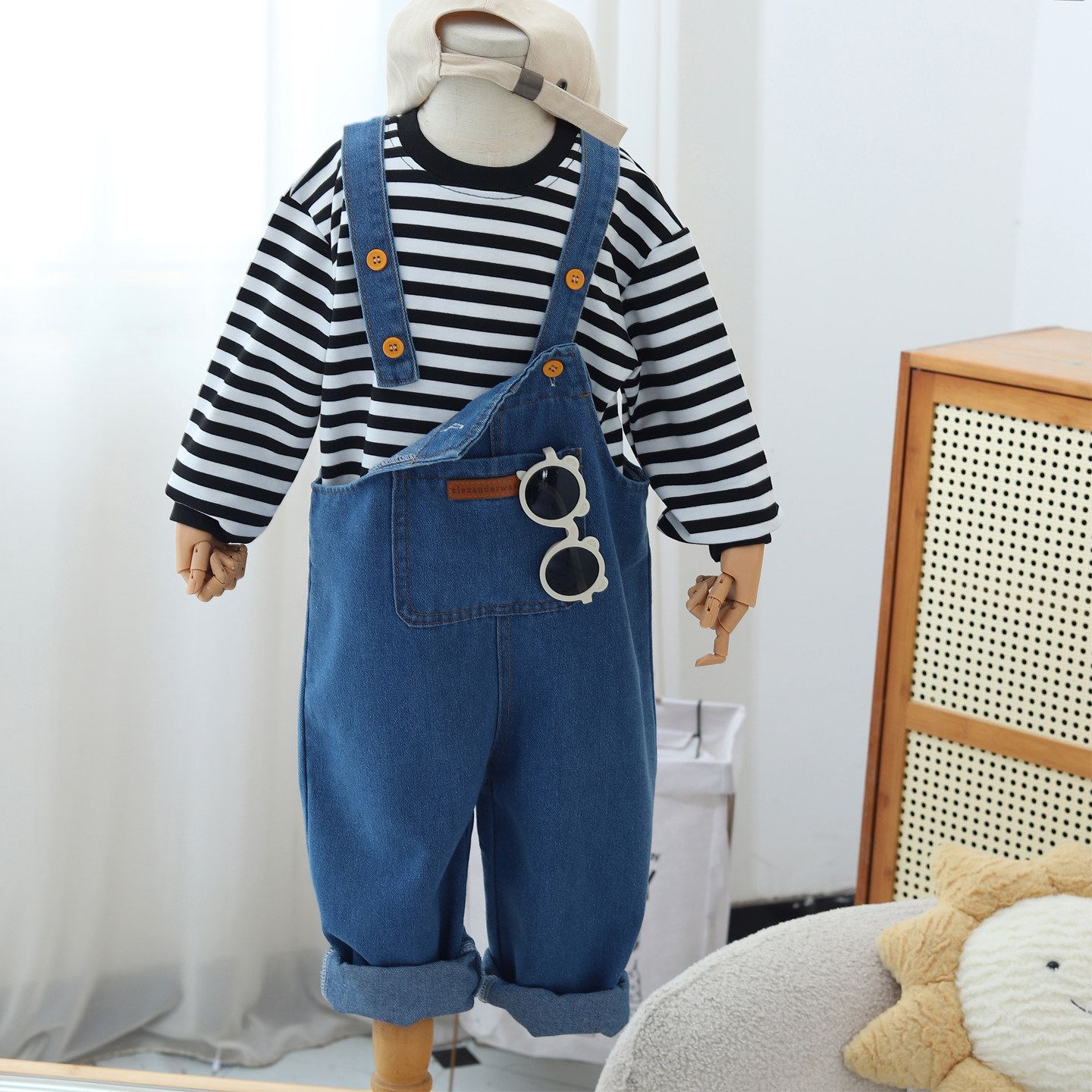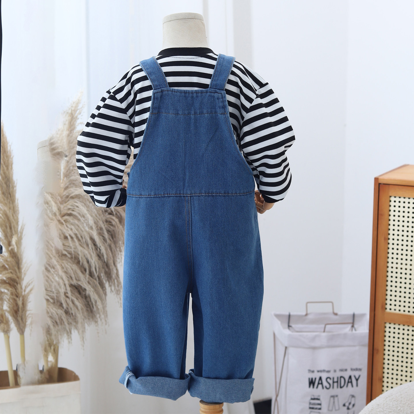 宽松百搭儿童摄影潮 子女童幼儿园宝宝软牛仔裤 男童背带裤 春秋长裤