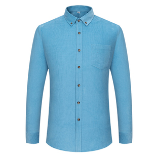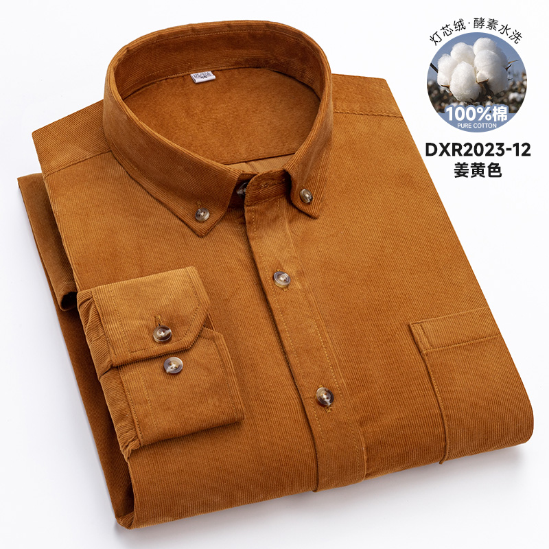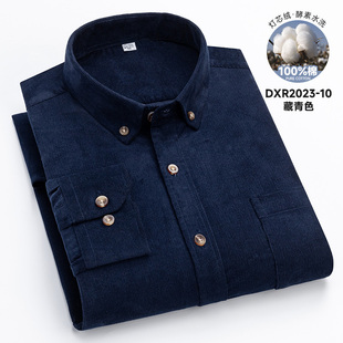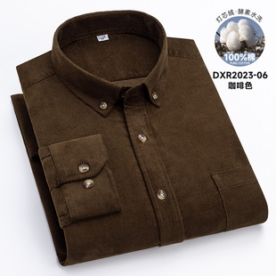 男装 保罗100%纯棉男士 中青年休闲全棉纯色衬衣大码 衬衫 灯芯绒长袖