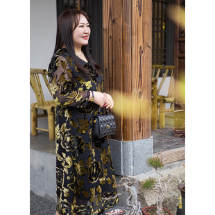 秋冬丝绒连衣裙宽恕大码 连衣裙