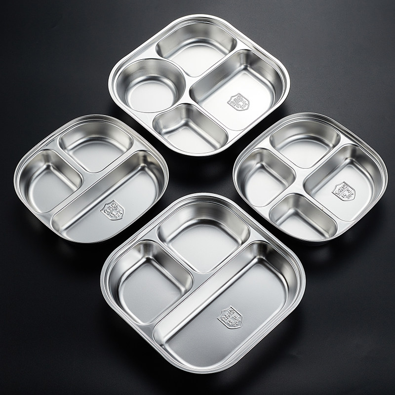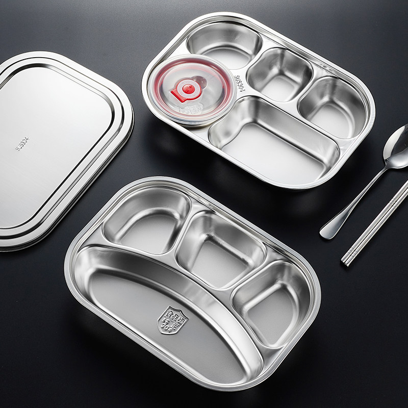 304不锈钢餐盘幼儿园儿童餐具成人学生分格带盖快餐盘食堂分餐盘