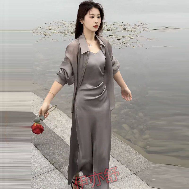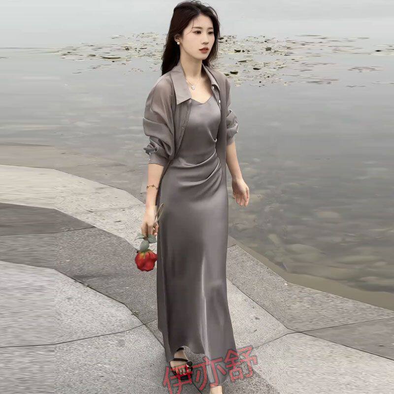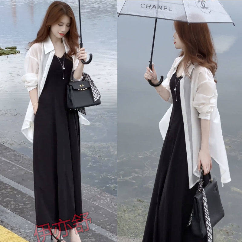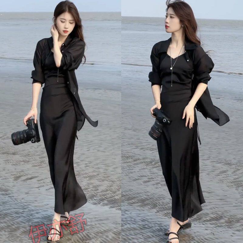 配吊带裙子外搭披肩罩衫 后背蝴蝶开叉天丝衬衫 女夏防晒衣薄纱开衫