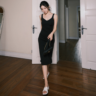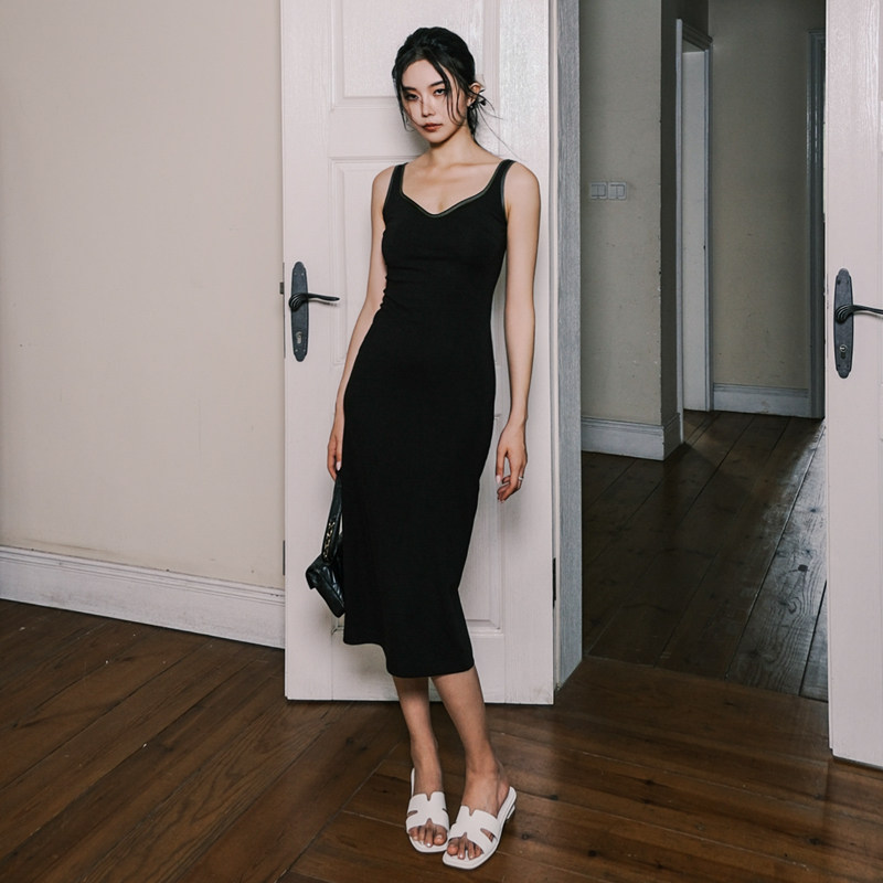 秀款 dio 精仿丝毛光泽感收腰吊带连衣裙礼服 赫本裙 Middletone